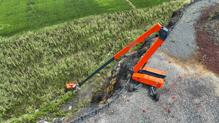 但其实,除了高度外,还有一项参数常常被人所忽视,那就是曲臂特有的下探本领。鉴于曲臂结构的特殊性,它不仅可以“上天”,还特别能“入地”——尤其是应对那些需要深度下探的复杂工况,比如矿坑作业、陡坡作业等。